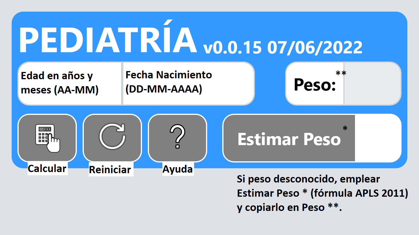 Por favor, tenga en cuenta que los creadores de esta App no tendrán ninguna responsabilidad en relación al uso de la misma en la práctica clínica. Aunque hemos extremado los controles y comprobaciones para minimizar la posibilidad de errores, el usuario debe conocer que es responsable de las medicaciones y del material que emplea en la estabilización del paciente pediátrico a su cargo.